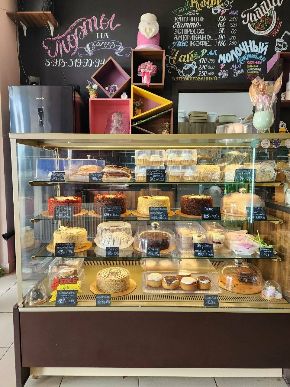 Отличная кафешка! Торты на любой вкус, таблички с поздравлениями на день рождения, детский уголок, пирожные и кексы! Качество на высоте и все очень вкусно! Заслуженные 5 звёзд ♥️